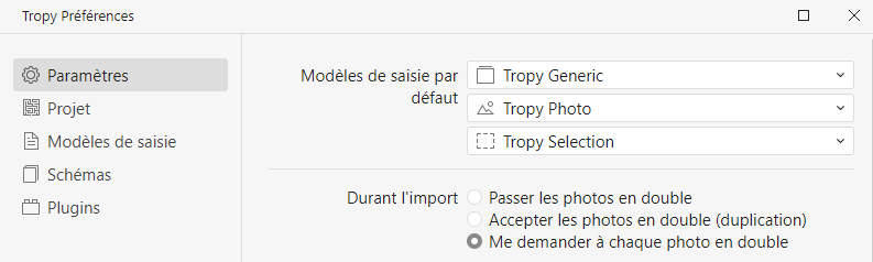 - Menu: Edition > Préférences… | onglet Plugins -> Définir un profil d’import (modèle de saisie) IIIF dans les paramètres du plugin.