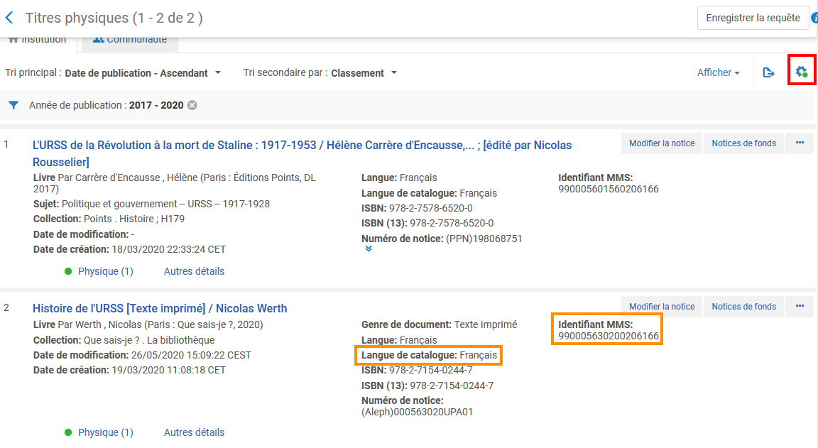 Dans la notice il y a peut-être des informations dont on n’a pas besoin, le MMS = N° d’Aleph mais en beaucoup plus long…