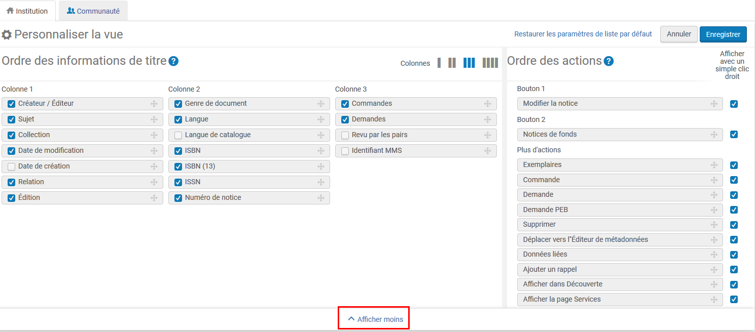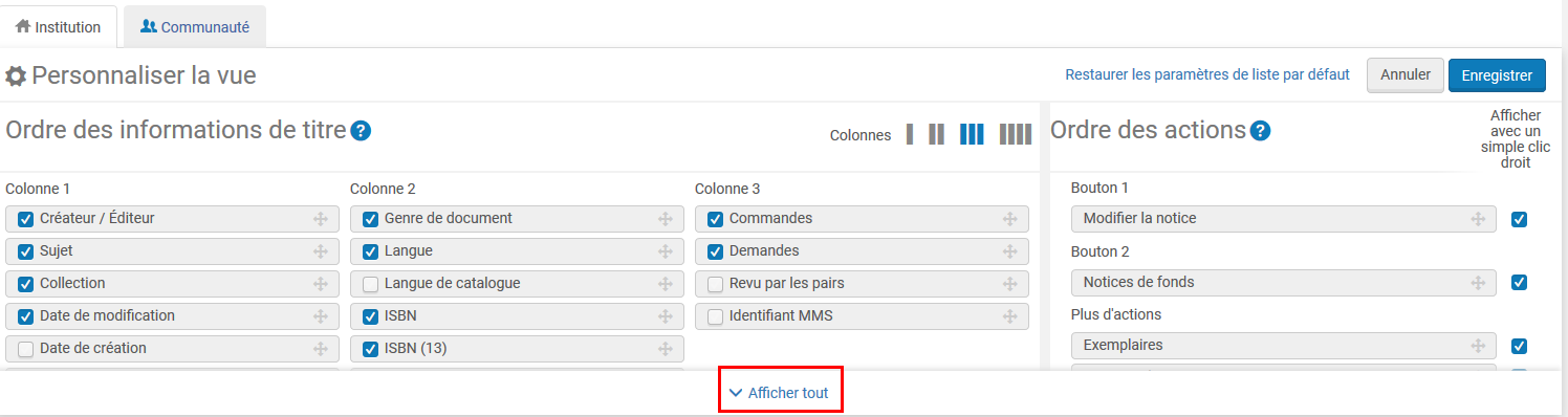 - Il vous suffit de désélectionner les informations que vous ne souhaitez pas voir apparaître. N’oublier pas d’enregistrer vos modifications