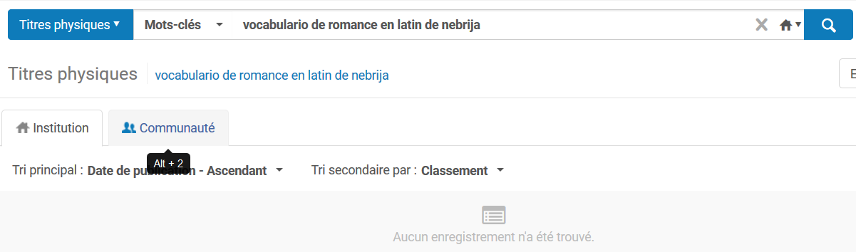 L’ouvrage n’a ni holding, ni exemplaire, si on le cherche dans « Titres physiques »