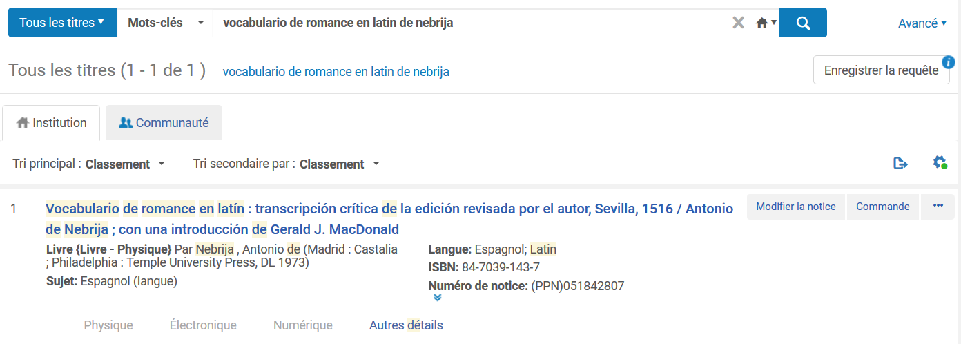 Il faut chercher ce type d’ouvrage dans « Tous les titres »
