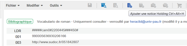 Il faut ajouter une holding, allez sur le bouton, « Ajouter une notice holding »