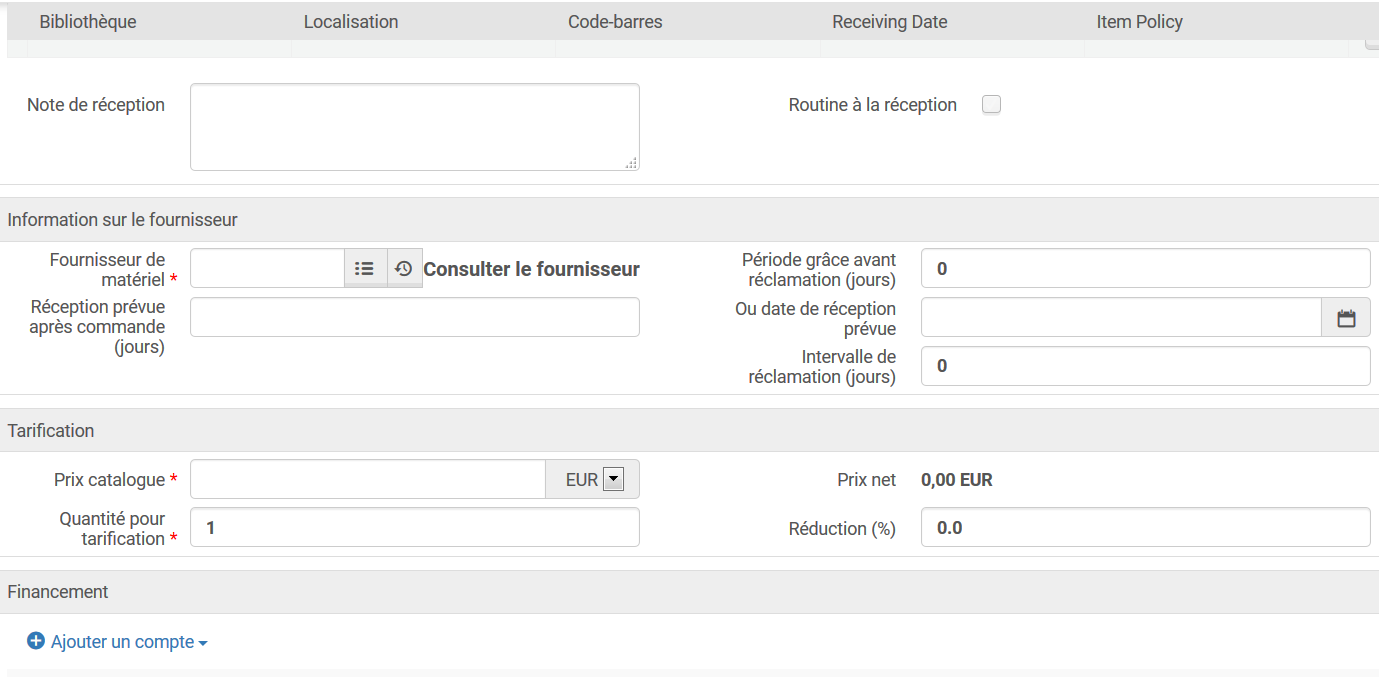 5/ Remplir les champs fournisseurs, le prix HT : Pour les fournisseurs (ADAV, Colaco…), cliquez sur