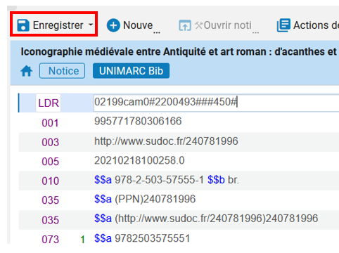 On peut chercher par PPN… , importer la notice puis l’enregistrer