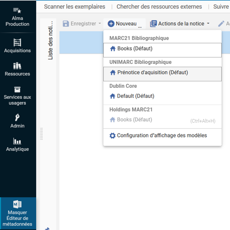 2-2/ Si l’ouvrage n’est dans le Sudoc : on peut faire une notice rapide dans Alma