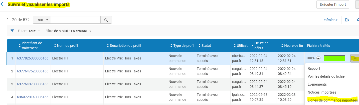 Je vais dans Acquisitions Importer Suivre et visualiser les imports