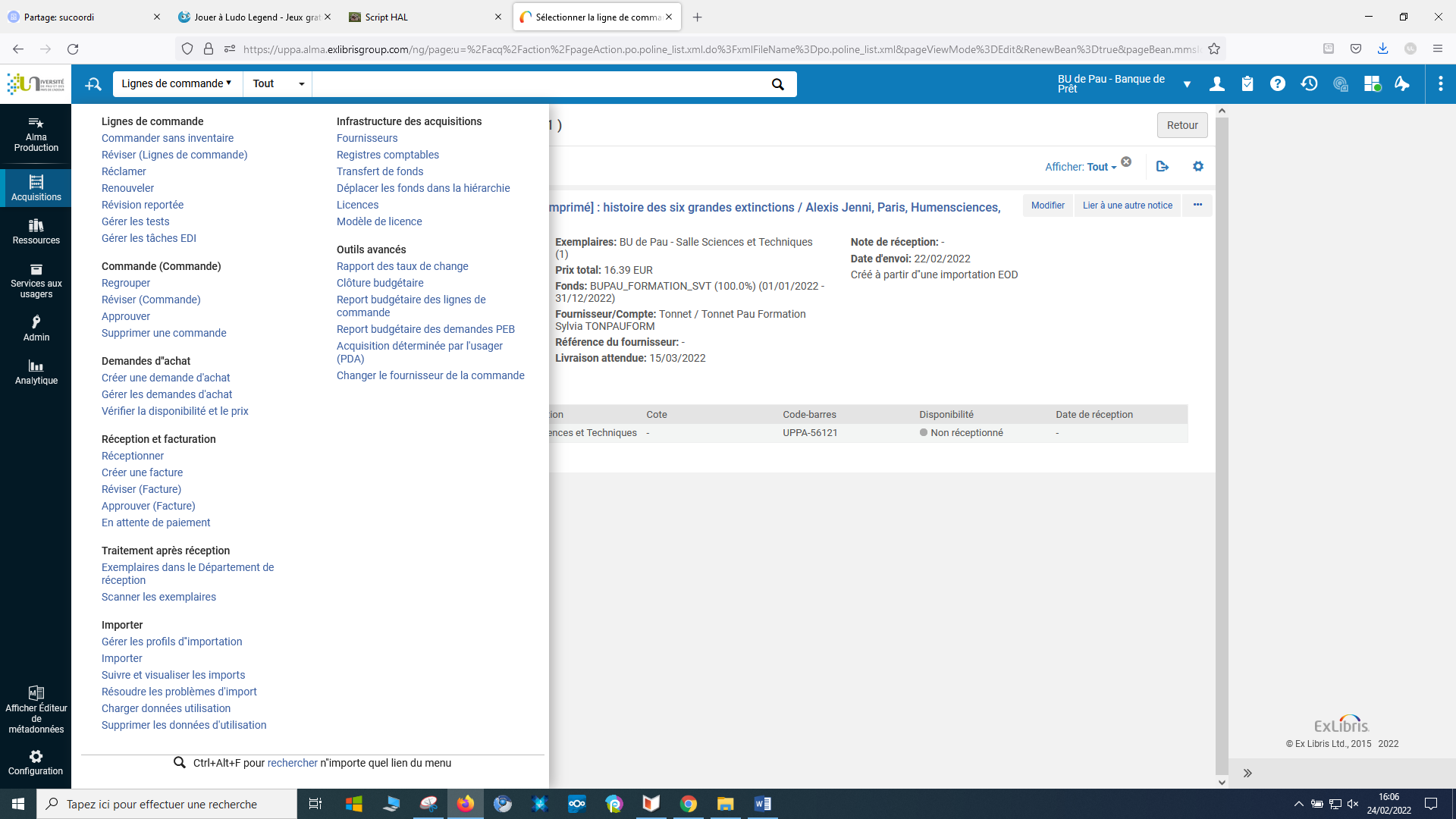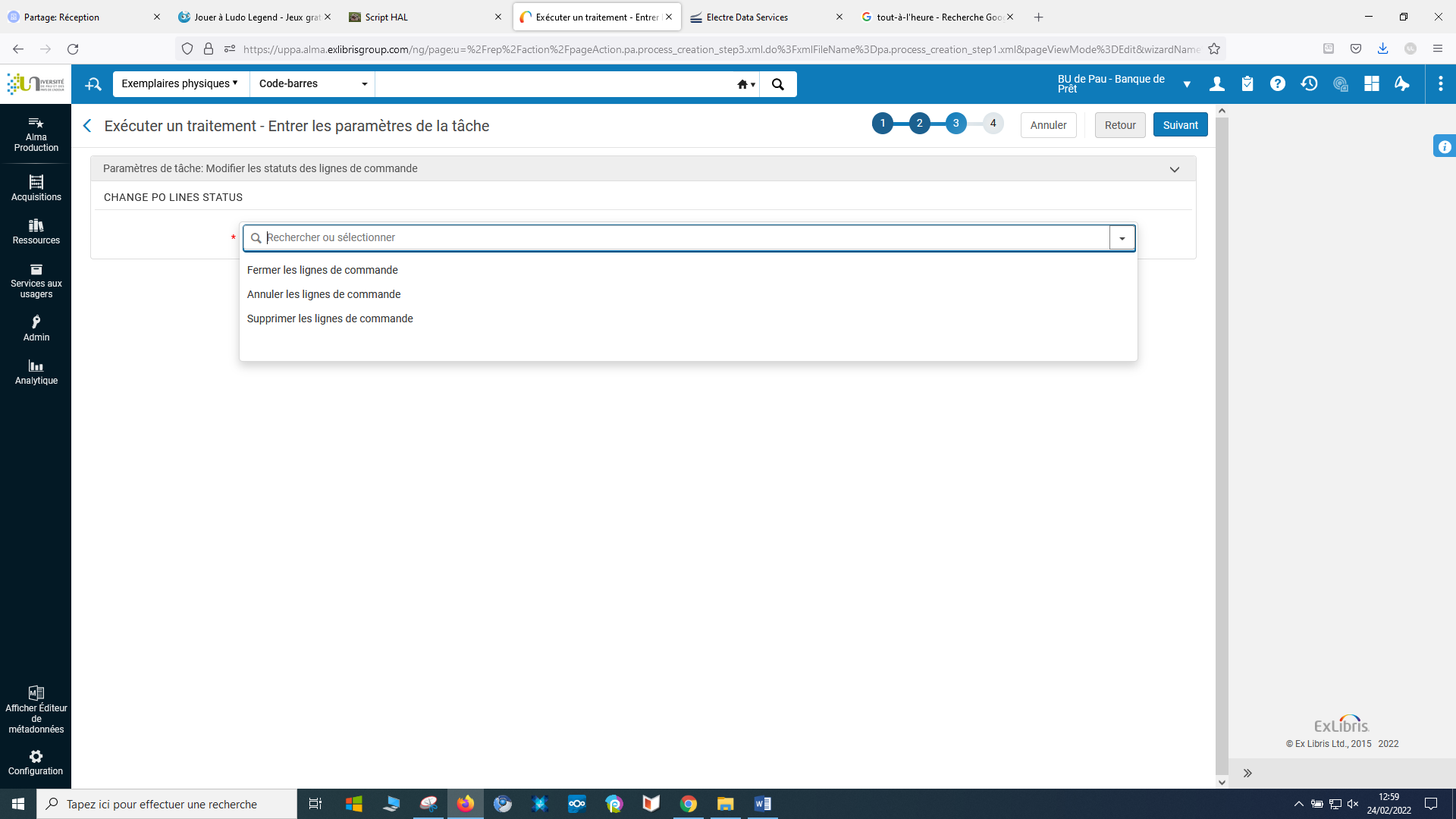 ATTENTION ! Ce procédé n’est possible que le jour même de l’import du panier de commande dans Alma. Dès que les lignes de commande ont été regroupées dans un bon de commande, c’est celui-ci qu’il faut supprimer en entier