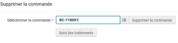 Il faut indiquer le numéro du bon de commande et cliquer sur ‘Supprimer la commande’: