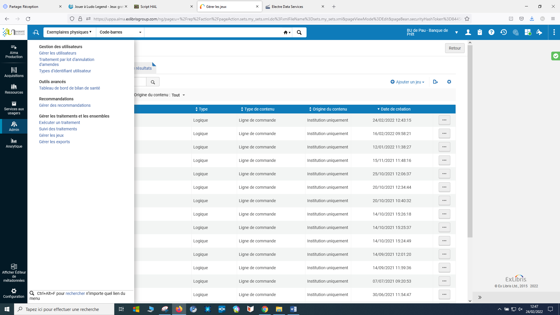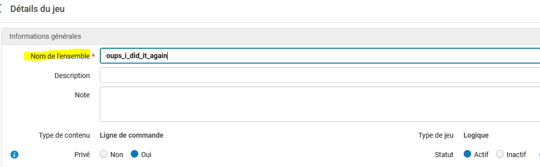 Ce jeu de résultats pourra être retrouvé et consulté par la suite dans le menu Admin Gérer les jeux.