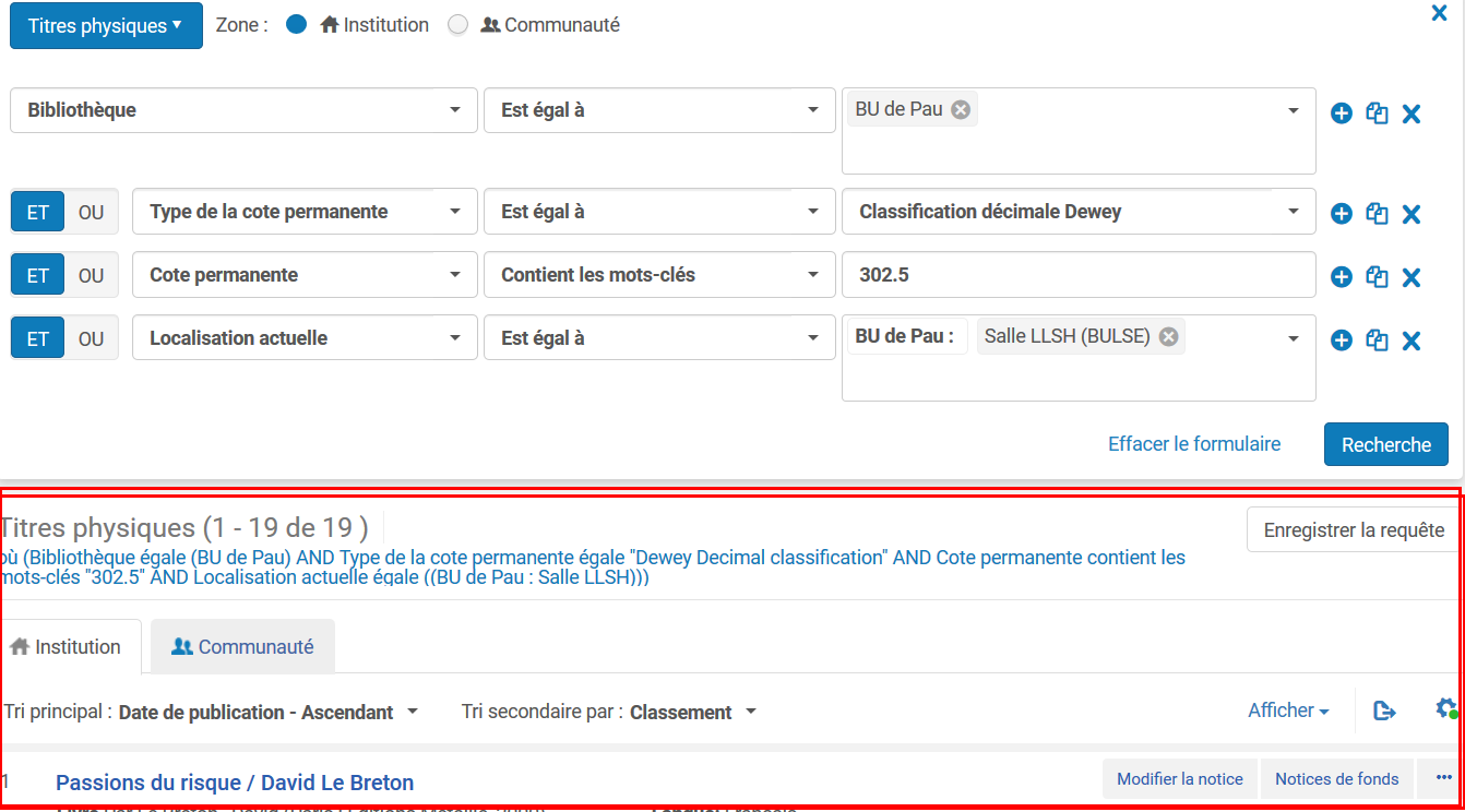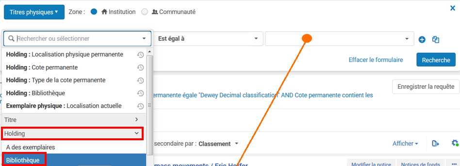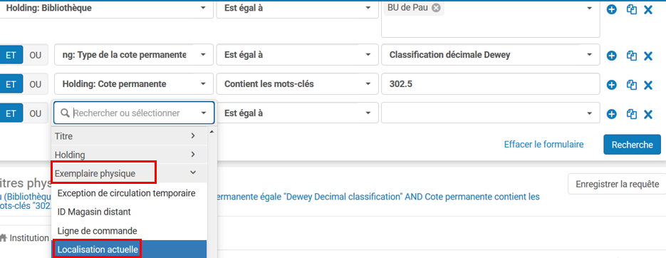 - Dans Exemplaire physique, choisir Localisation actuelle