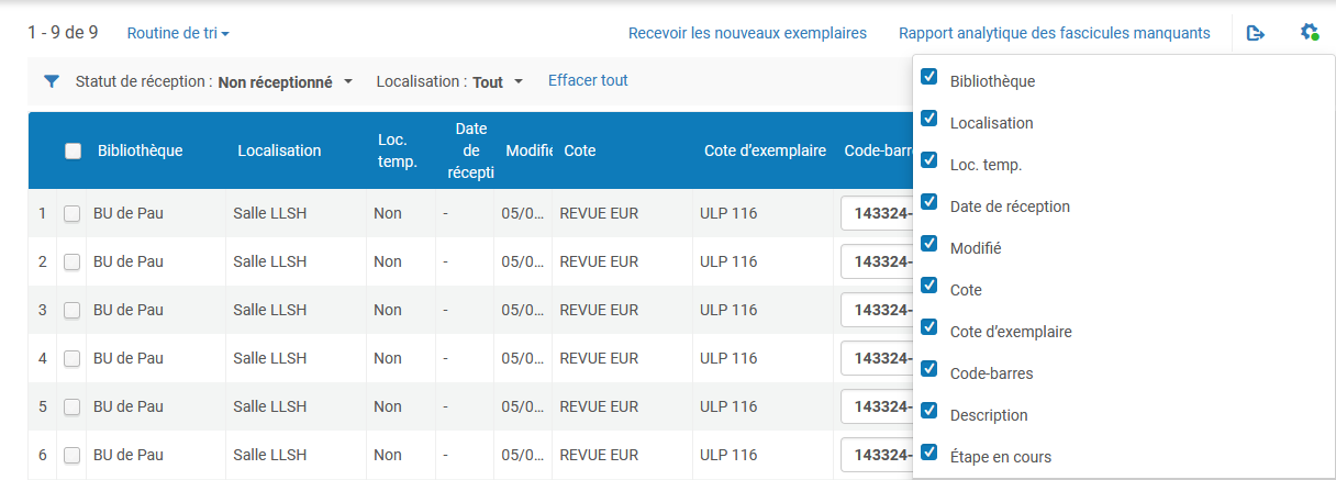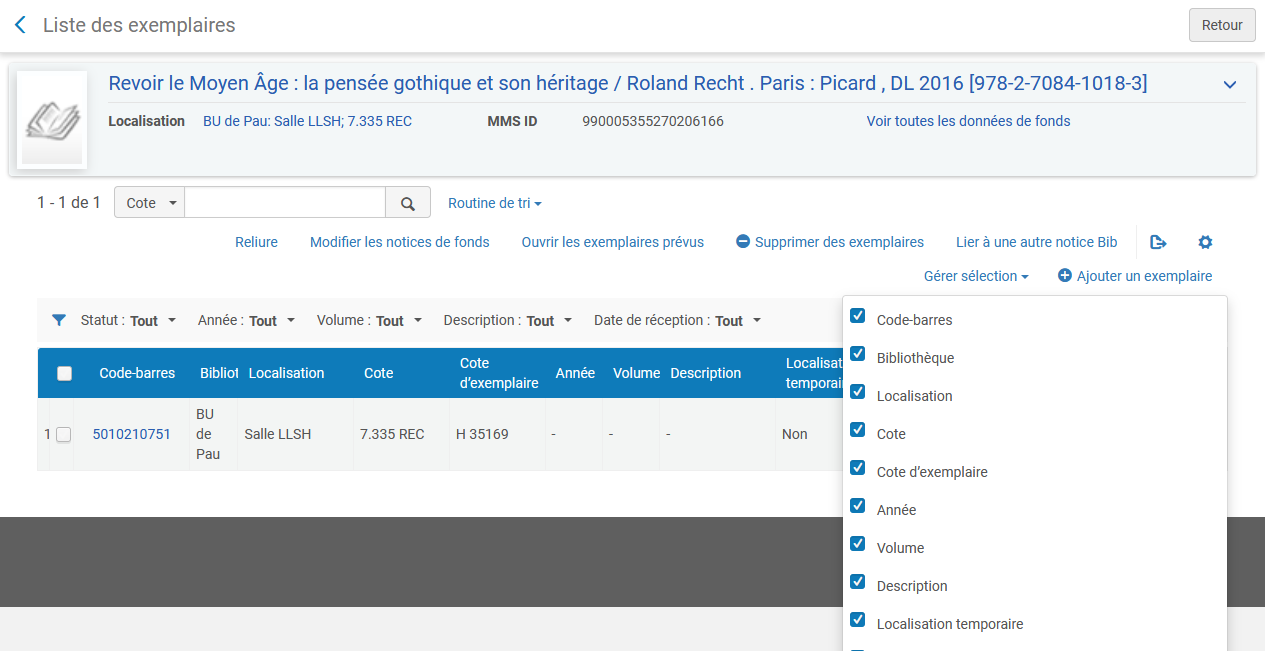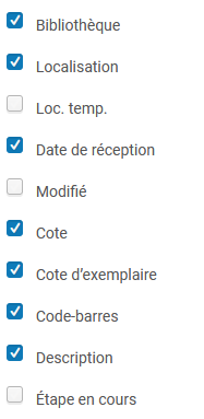 , les champs apparaissent, désélectionner les champs que vous ne voulez plus voir apparaître