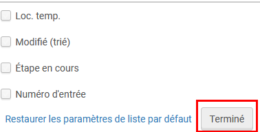 , la liste apparaît, désélectionner les champs que vous ne voulez pas voir apparaître et cliquer sur Terminé comme ci-dessus