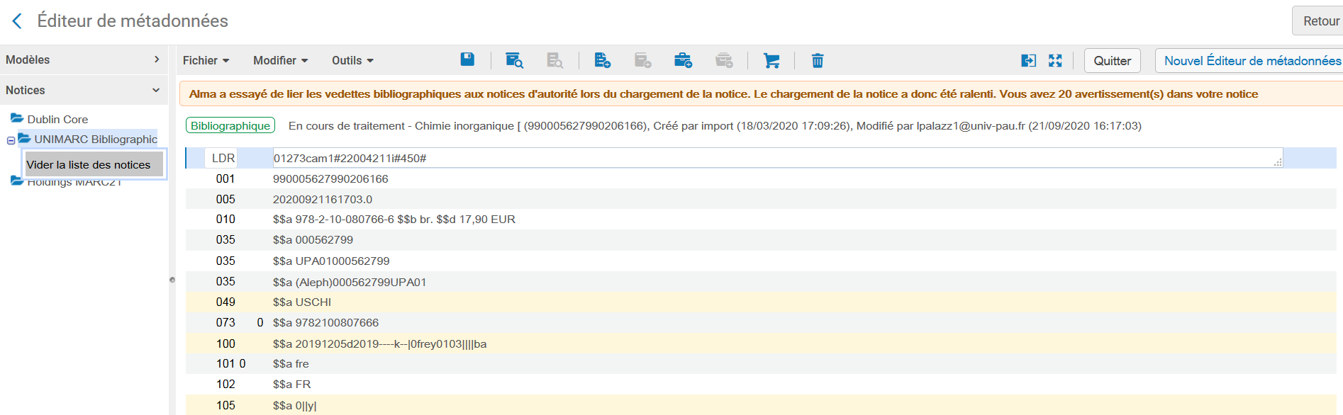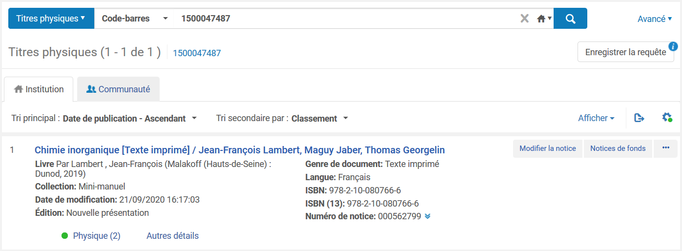1/ Se mettre sur une notice et cliquez sur « Modifier la notice »